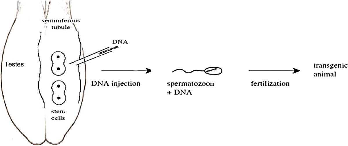 - Sperm cells are mixed with the foreign DNA and used for fertilization.